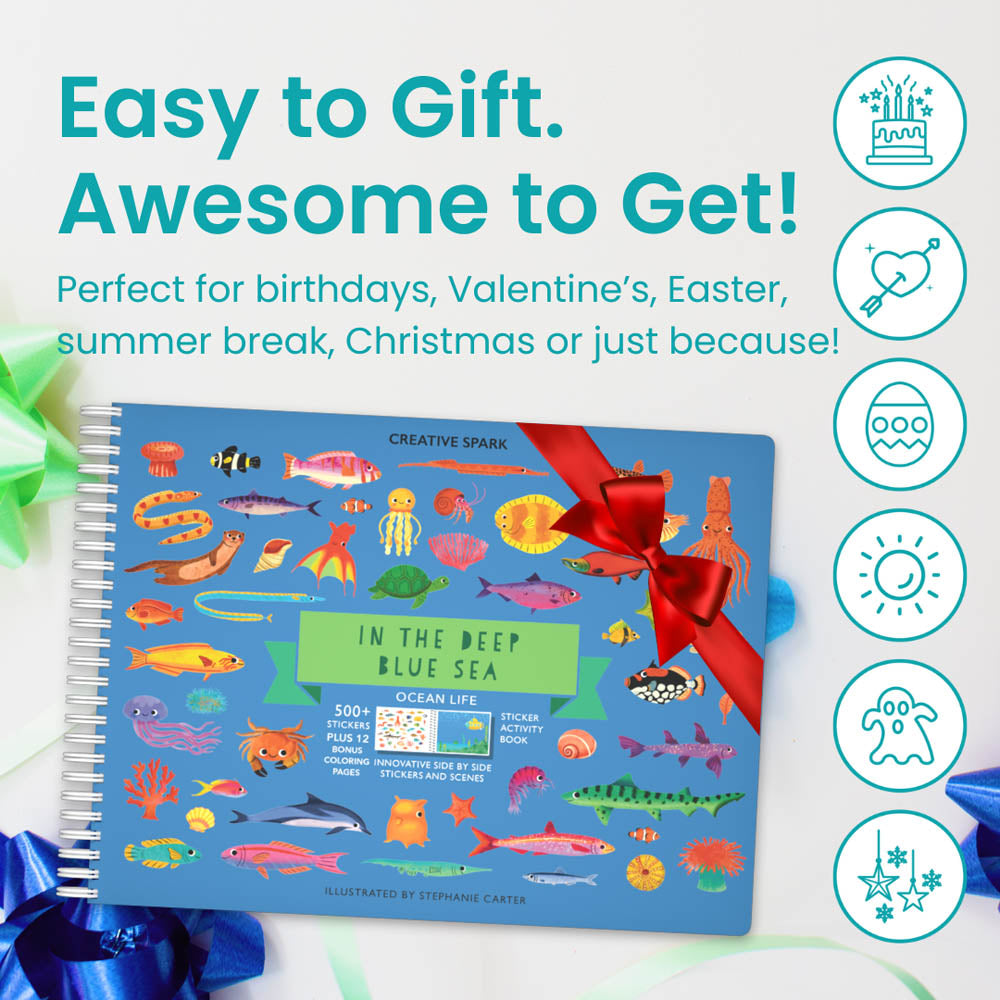 Whether you dream of swimming with sea turtles or uncovering a hidden treasure chest, this sticker book lets you create an oceanic adventure as deep as your imagination.